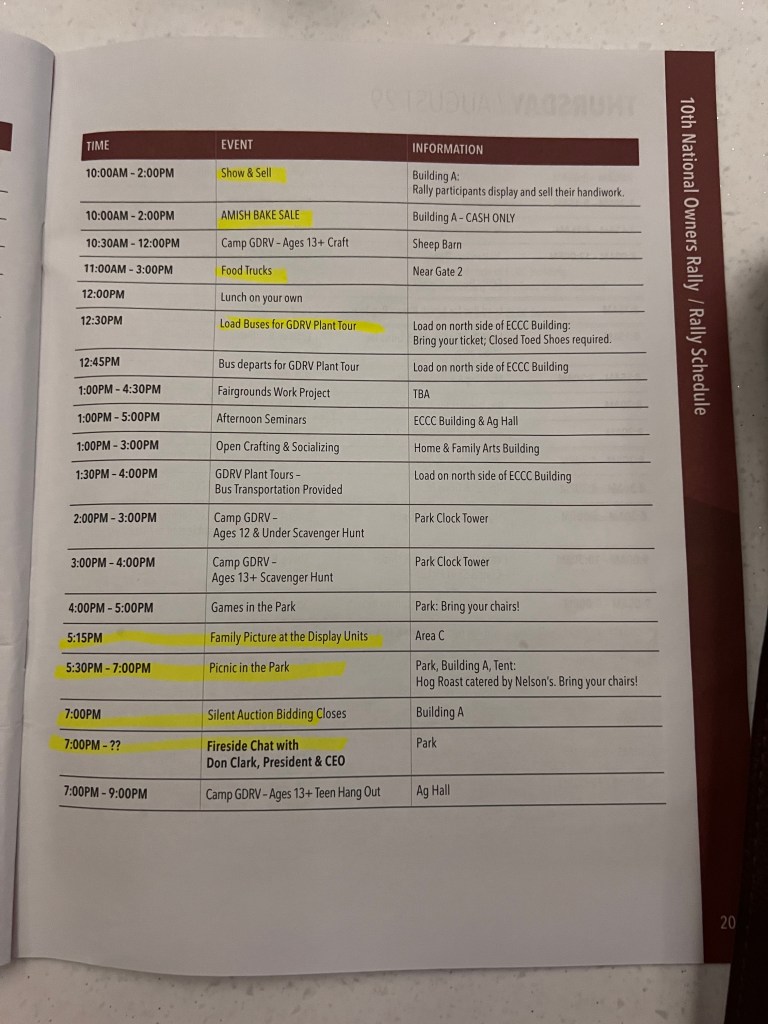 The Grand Design National Rally takes over the Elkhart 4-H Fairgrounds. With over 600 Grand Design rigs on the property., more than 1500 owners, vendors, and Grand Design staff gather to explore all things RV and Grand Design.