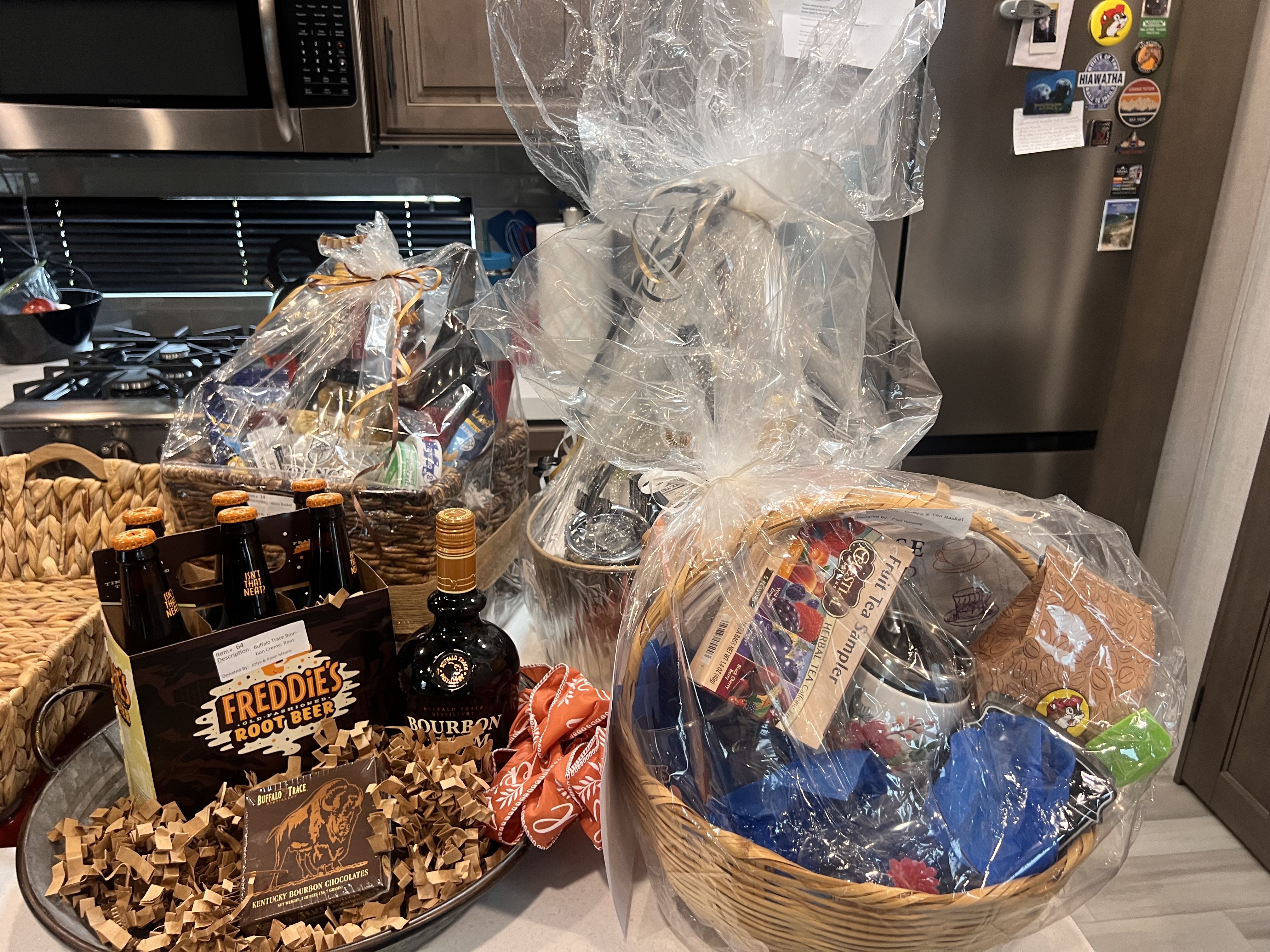 By attending we got work done on our rig and bought a few new accessories which make life on the road a little easier. New wallpaper in the bathroom and an improved entry door handle were worth the trip. Every day’s agenda was filled with activities and opportunities. One of my favorites was the silent auction, where I walked away with four baskets of goodies!