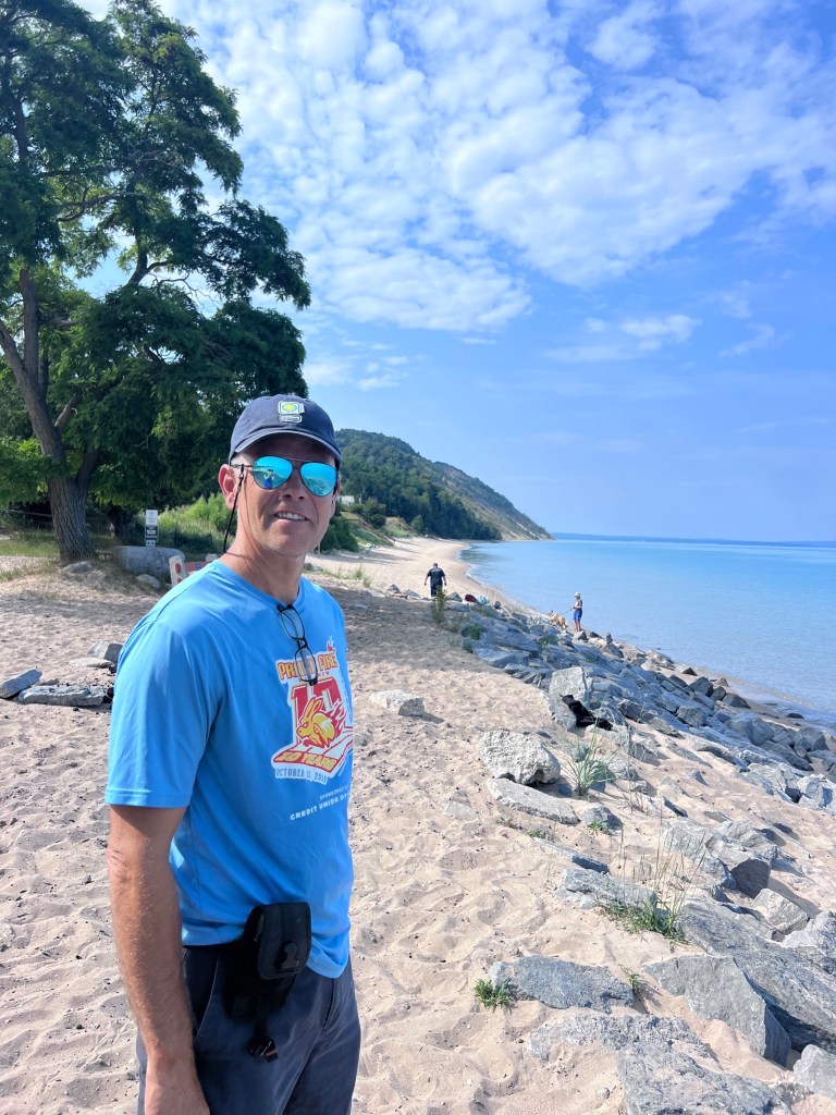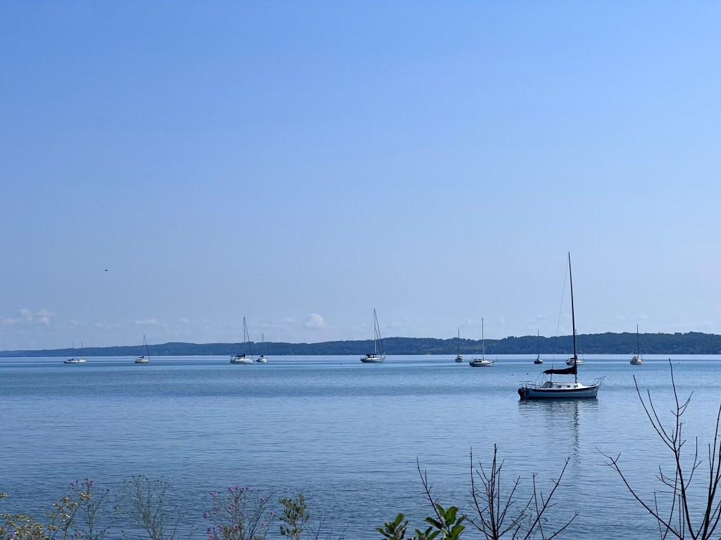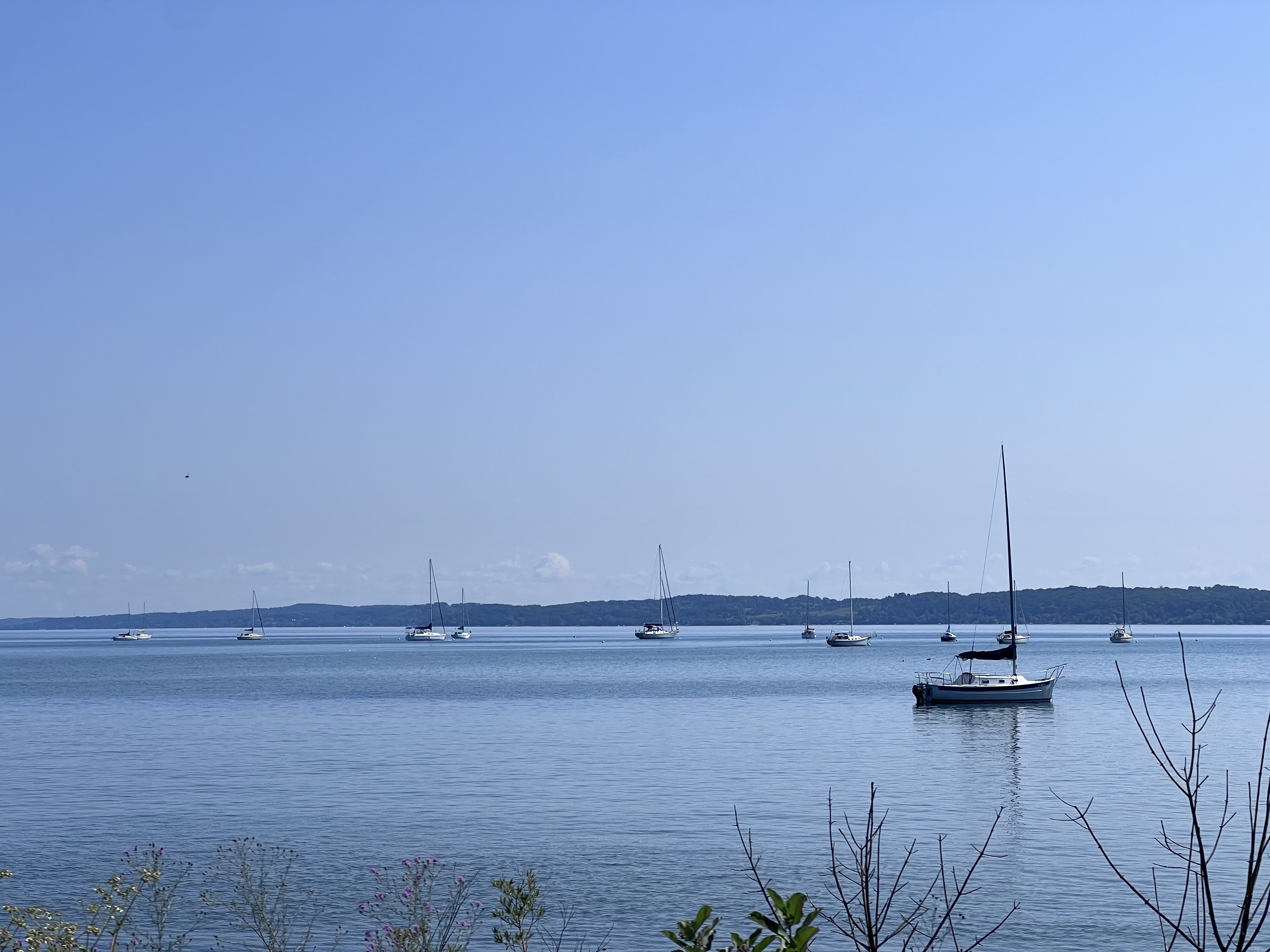 Mitch made his second visit to Traverse City in early August and stayed with us for a week. We kept busy with visits to farmers markets, a distillery, wineries, and a day on a pontoon in Torch Lake with our neighbors Norb and Linda. Mitch got to know the neighbors and a good time was had by all!