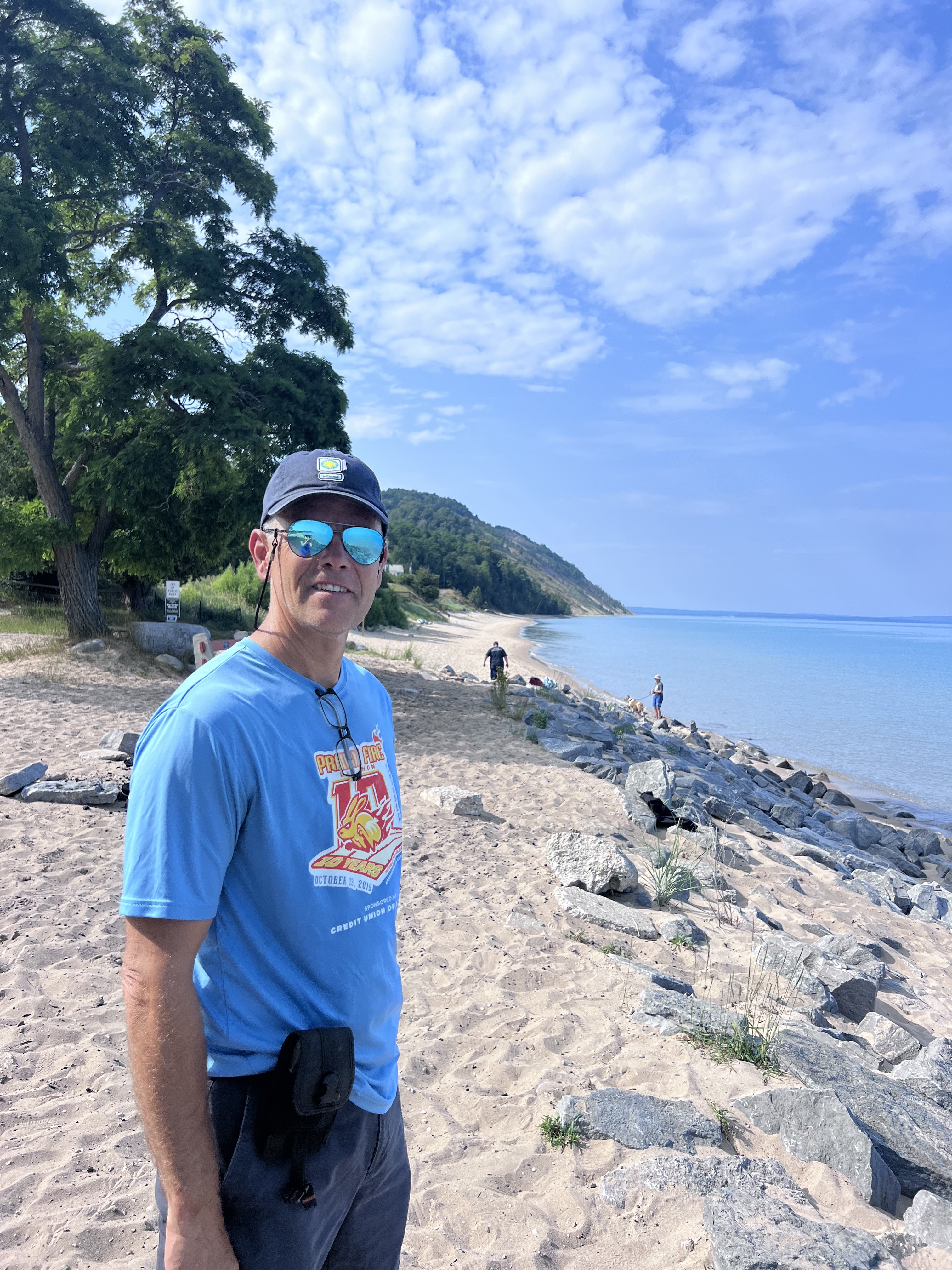 Next to swing through town was Steve’s brother Gary and his two kids Brynn and Hudson. We were sorry sister-in-law Kristy couldn’t make it to share in the fun. The group went fishing one morning and caught a bunch of lake trout and Brynn and I spent another day shopping in downtown Traverse City. The kids also did the dune climb with Steve, which was his third time in three weeks.